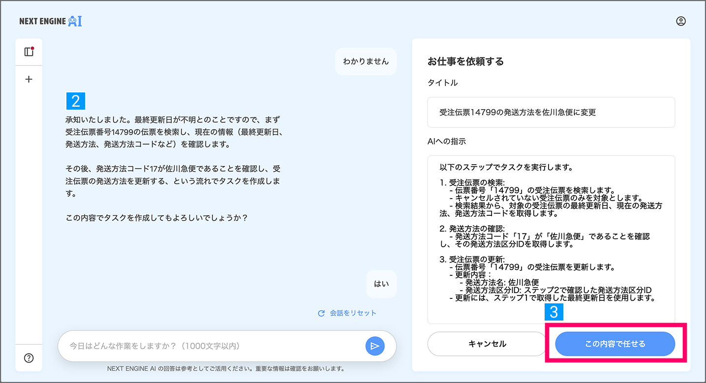 - [この内容で任せる]をクリック
