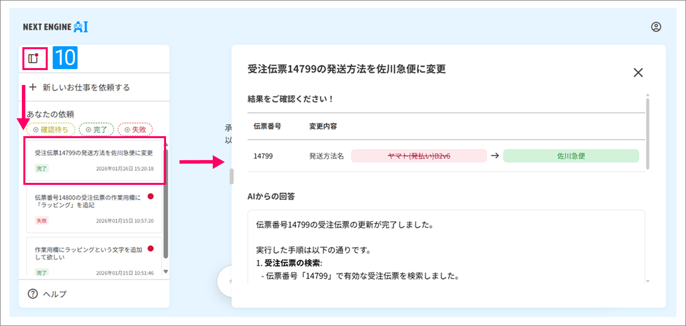- 依頼したタスクを確認