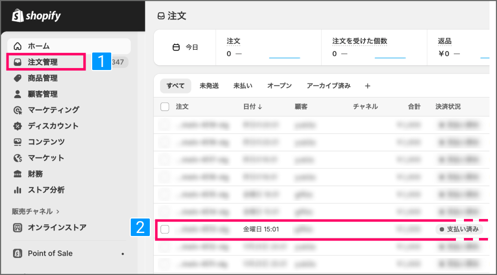 取り込み不要な過去注文がある場合は、連携開始前にShopify側で必ずアーカイブしてください。