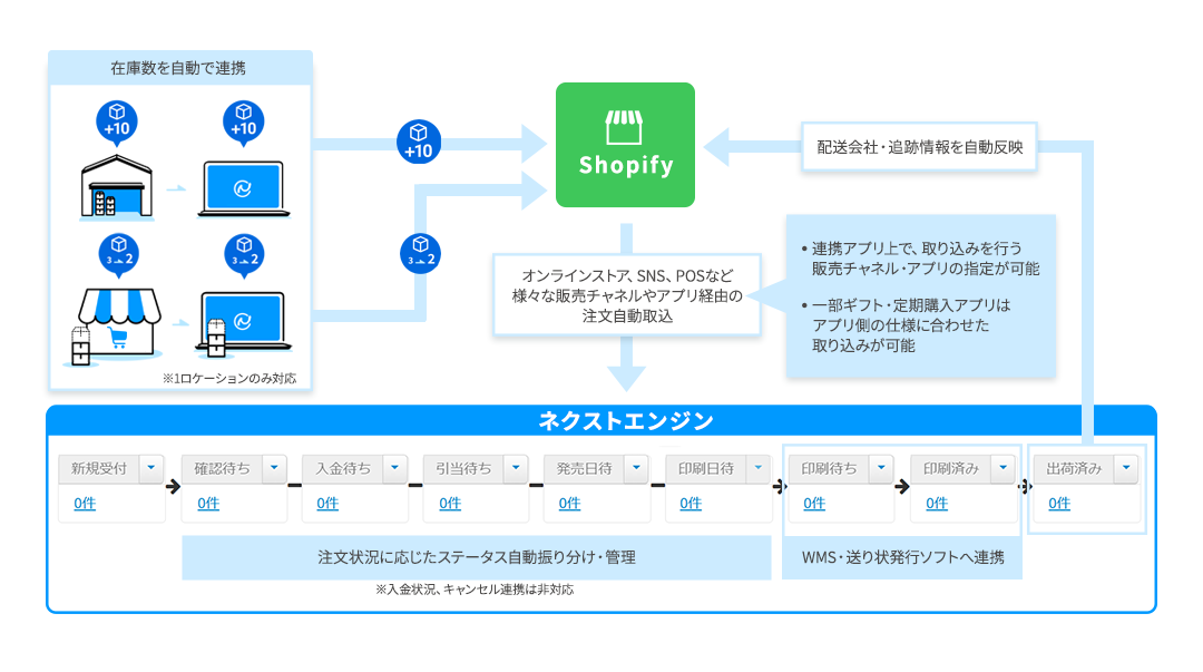 Shopify用自動連携アプリを利用した、Shopifyとの連携概要のご案内です。