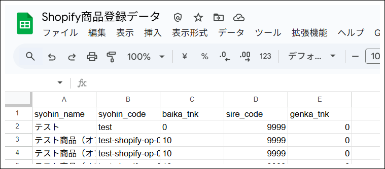 商品登録データは、Googleスプレッドシート上で関数を活用して作成します。
